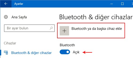 Adım 2 – “Bir Bluetooth aygıtı ya da başka bir cihaz ekleyin” düğmesine tıklayın ve Bluetooth’u seçin.