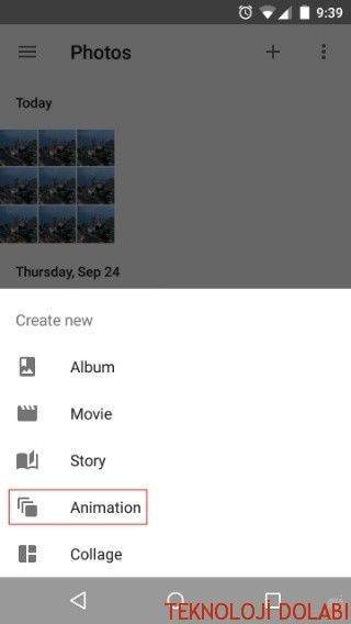 Bu hayalinizi hayata geçirmek istediğiniz ve arkadaşlarınız ile paylaşmak istediğiniz görüntüler cihazınızda varsa, Google Fotoğraflar ile animasyonlar oluşturmak oldukça kolay. Yapmanız gereken ilk şey, Google Fotoğraflar uygulamasını uygulama menüsünde bulmak ve açmak olacaktır. Animasyonlar oluşturmak için uygulamanın sağ üst kısmında bulunan (+) simgesine dokunun. Ardından açılan menüden Albüm, Film, Hikaye, Animasyon, Kolaj gibi seçeneklerden birini seçin. Bundan sonra size seçtiğiniz kategoriyi oluşturmak istediğiniz fotoğrafları seçmek kalıyor. Galerinizde 50‘ye kadar fotoğrafları seçtikten sonra sağ üst köşedeki “Oluştur” düğmesine dokunun. Tebrikler bitirdiniz.