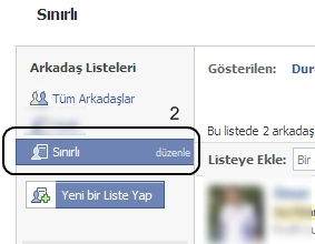 Tamamı tıklayıp, onaylıyoruz. Bundan sonra arkadaşlarınızı görmesini istemediğiniz kişileri bu “Sınırlı” listesine ekleyerek arkadaşlarınızın görünmesini engelleyebilirsiniz.