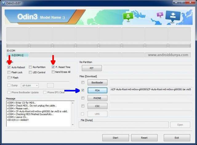 Daha sonra PDA butona basıp aynı kılasör içindeki inception-samsung-goyavewifi-autoroot.tar.md5 dosyasını seçin. Seçeneklerden Re-Partition işaretli olmadığına emin olun. Ayarlar yukarıdaki gibi olmalıdır.