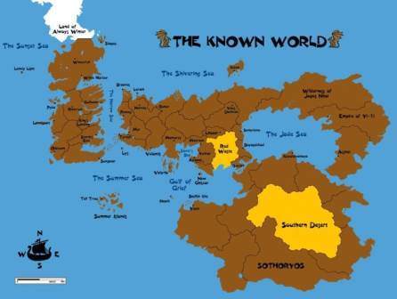 Tıpkı bizim dünyamızdaki gibi, Westeros yani batı, doğuya göre oldukça gelişmiş ve medeniyeti oldukça ilerlemiş, ancak buraya insanlar doğu uygarlıklarından gelmişler. Yani insanların hayatı ilk başta doğuda başlıyor, sonra Westeros keşfediliyor. Sothoryos’a ise çok fazla değinilmiyor.