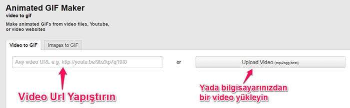 Popüler video paylaşım sitelerinden kopyaladığınız video linkini yukarıdaki resimde gördüğünüz ilgili alana yapıştırıyorsunuz. Seçeceğiniz videonun 35MB’dan büyük olmaması gerekiyor. Daha büyük videolardan gif yapmak istiyorsanız Pro sürüme geçmeniz gerekiyor.
