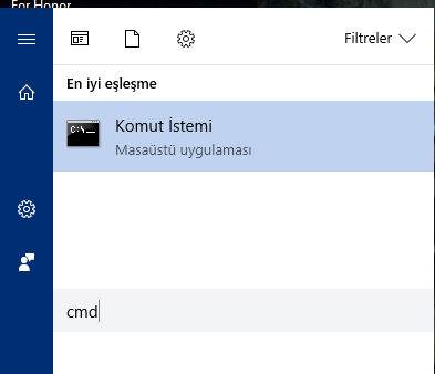 Eğer Windows 10 kullanıyorsanız başlat menüsünü açtığınızda direkt olarak cmd yazıp enter tuşuna basın: