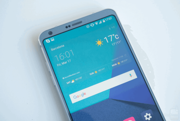 LG G6‘da önceden uygulanmış varsayılan hava durumu ve saat widget’ı bulunur.