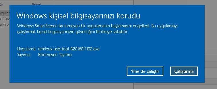 - Klasörün içinde bulunan remixos-usb-tool uygulamasını çalıştırıyoruz. Çıkan pencereyi onaylıyoruz.