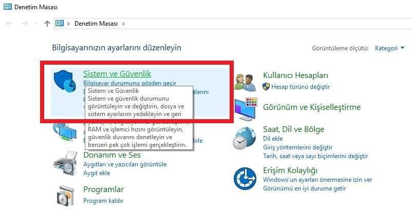 1 Arama çubuğuna Denetim masası yazarak açın. Burada ‘Sistem ve Güvenlik’ bölümüne girin