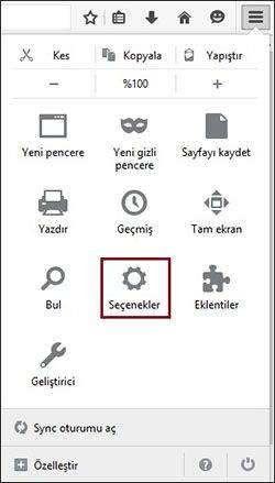 - Öncelikli olarak yukarıda sağ tarafta yer alan Menü butonuna tıklayın, daha sonra açılan kısımdan Seçenekler‘ e tıklayın.