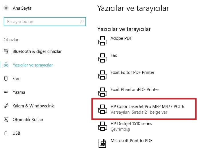 Windows 10’da Yazıcıyı Varsayılan Olarak Atama